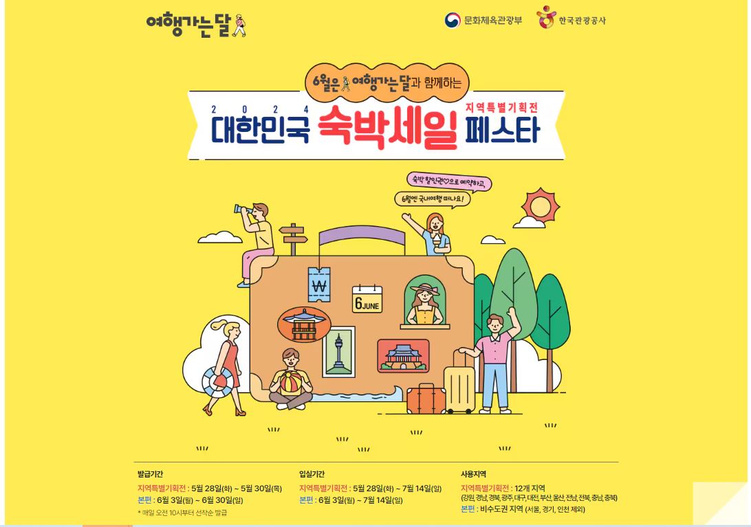 - 문화체육관광부와 한국관광공사는 2024년 2월~3월에 숙박할인권 20만 장을 배포하여 국민들에게 큰 사랑을 받은바 있어 '6월 여행하는 달'을 다시 한 번 추진하게 됨